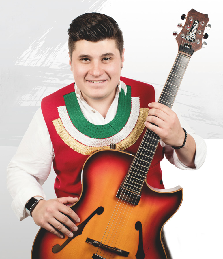 ALEX REICHINGER Alex ist für das Bühnenprogramm, für den fetzigen Gitarrensound und natürlich für den Gesang zuständig. Seine markante Stimme wird hauptsächlich für den modernen Sound der Gruppe ZPur und auch für einige musikalische Ausflüge zur „Oberkrainer Musik“ zum Tragen kommen. Im jungen Alter von 9 Jahren besuchte er den Lehrgang für Akkordeon bei Prof. Ferry Strassl an der Musikschule in Hall in Tirol und sammelte danach viel Erfahrung in der Musikbranche. Neben seinem Mitwirken bei der „Big Band der Militärmusik Tirol“ war er unter anderem auch Mitglied der „Rosskogelbuam“ und der „Freddy Pfister Band“ und ist außerdem auch als Solokünstler sehr erfolgreich. Mit seiner lockeren, frechen Art, seinem guten Humor und vor allem seinem großartigen musikalischen Können bereichert er zukünftig die Gruppe „ZPur-Die Zillertaler Musikanten“.